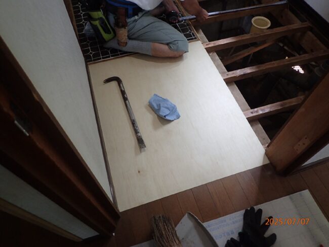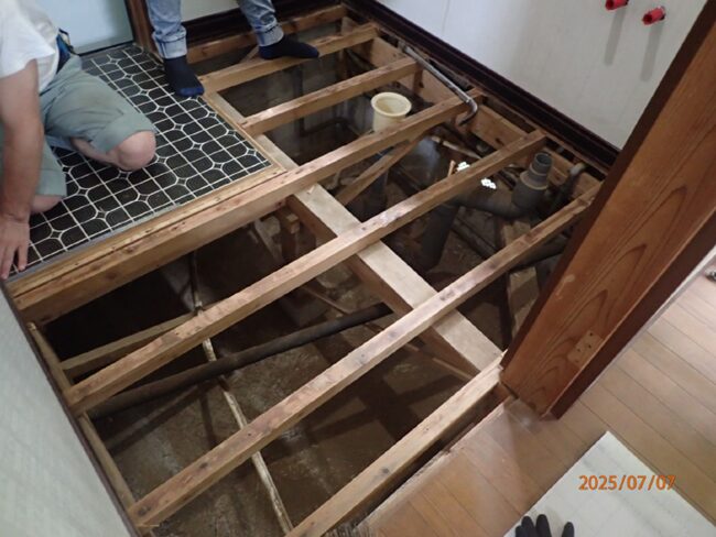 キッチン床と合わせて、傷んでいた床板を交換しました