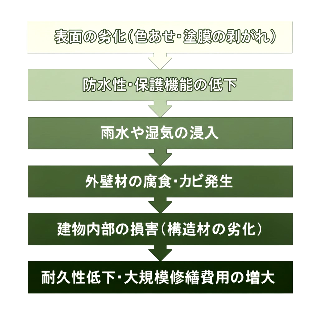 • 補修時期の誤判断:塗装のタイミングを逃し、劣化が進行