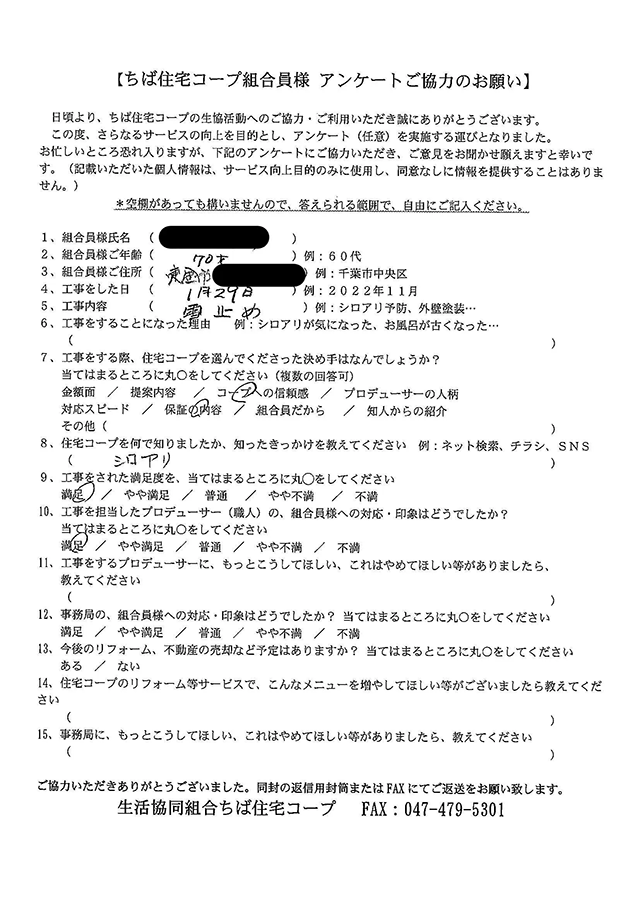 | ご住所 | 東金市 |