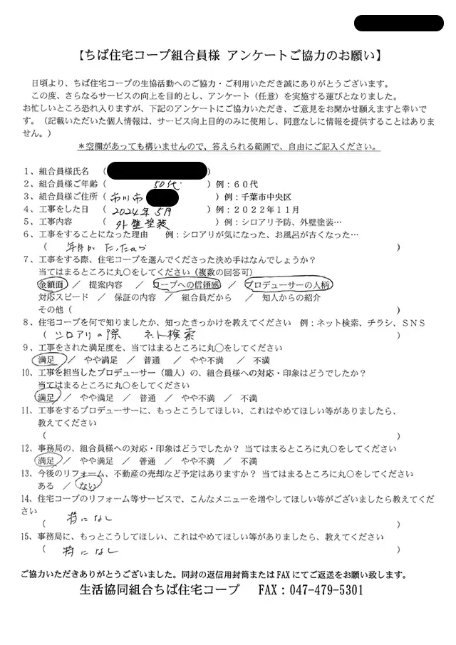 | 住宅コープを何で知ったか | シロアリの際 ネット検索 |