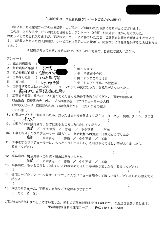 提案内容 コープへの信頼感 プロデューサーの人柄 対応スピード 保証の内容 組合員だから 知人からの紹介 その他 |